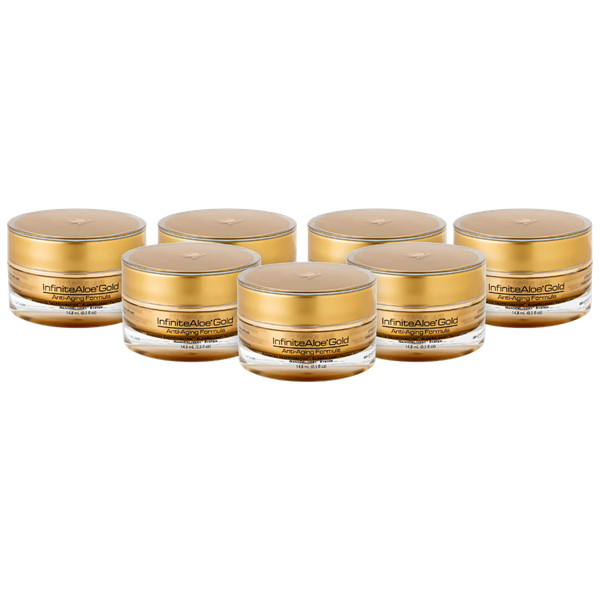 With this Gold Anti-Aging Set you’re saving over $500 off the full-price on this travel size bundle of InfiniteAloe Gold Anti-Aging products with this Special 7 Jar pricing! The non-sale price of these items purchased individually is $840 but you get them all at this bargain price through this special online offer. At this price you may be tempted to share jar or two with your friends!