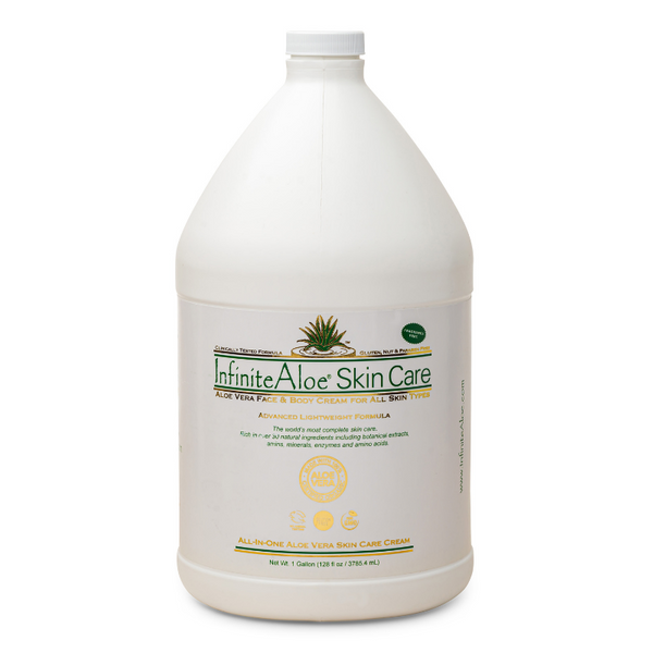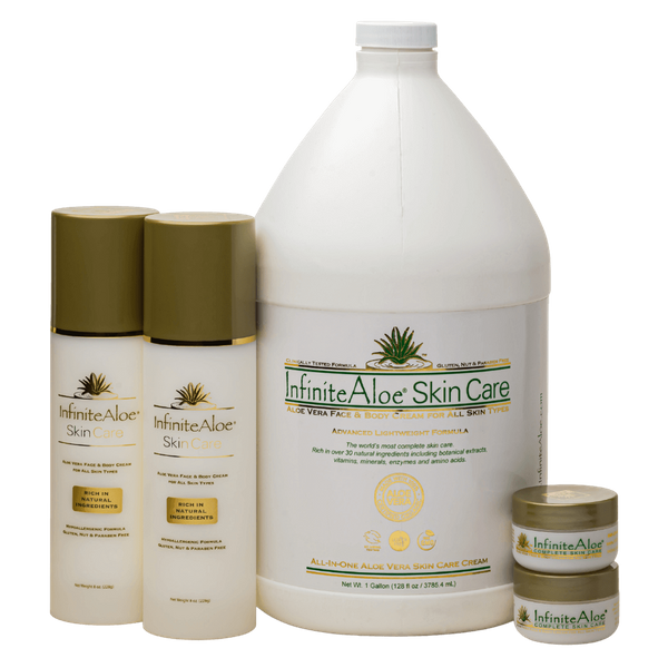 You receive the maximum volume savings for InfiniteAloe skin care with this Super Size Family Gallon Package bundle! Not only is the Gallon size the best deal on InfiniteAloe skin care per ounce, but you save even more with this bundle. The price of these items purchased individually is over $800 but you get them all for just $699.99 through this special Super Size Family Gallon Package.