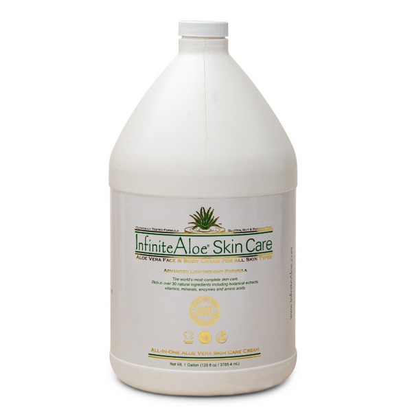 *Please note that two 8 oz. Salon bottles (as shown in the image) were originally included in this Gallon Set. Due to supply constraints, we are out of stock on these bottles and so have substituted the same amount of skin care cream with InfiniteAloe jars.
